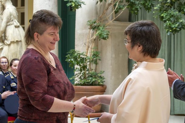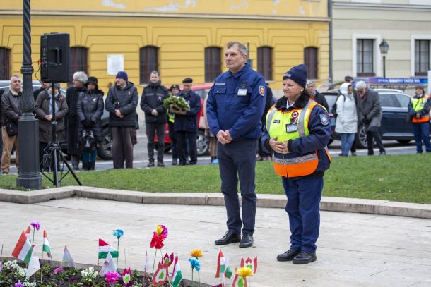 Koszorúzik: Dr. Sebestyén Árpád és Szabó Gizella polgárőr.